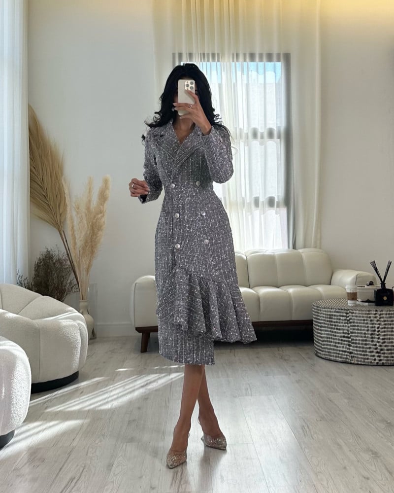يرجى التاكد من المقاس بالرجوع الى دليل المقاسات في القائمة الجانبية و يقاس بالانش.نوع القماش: شانيلالطول: 43 انش طول المودل: 160 سممقاس المودل: XS
