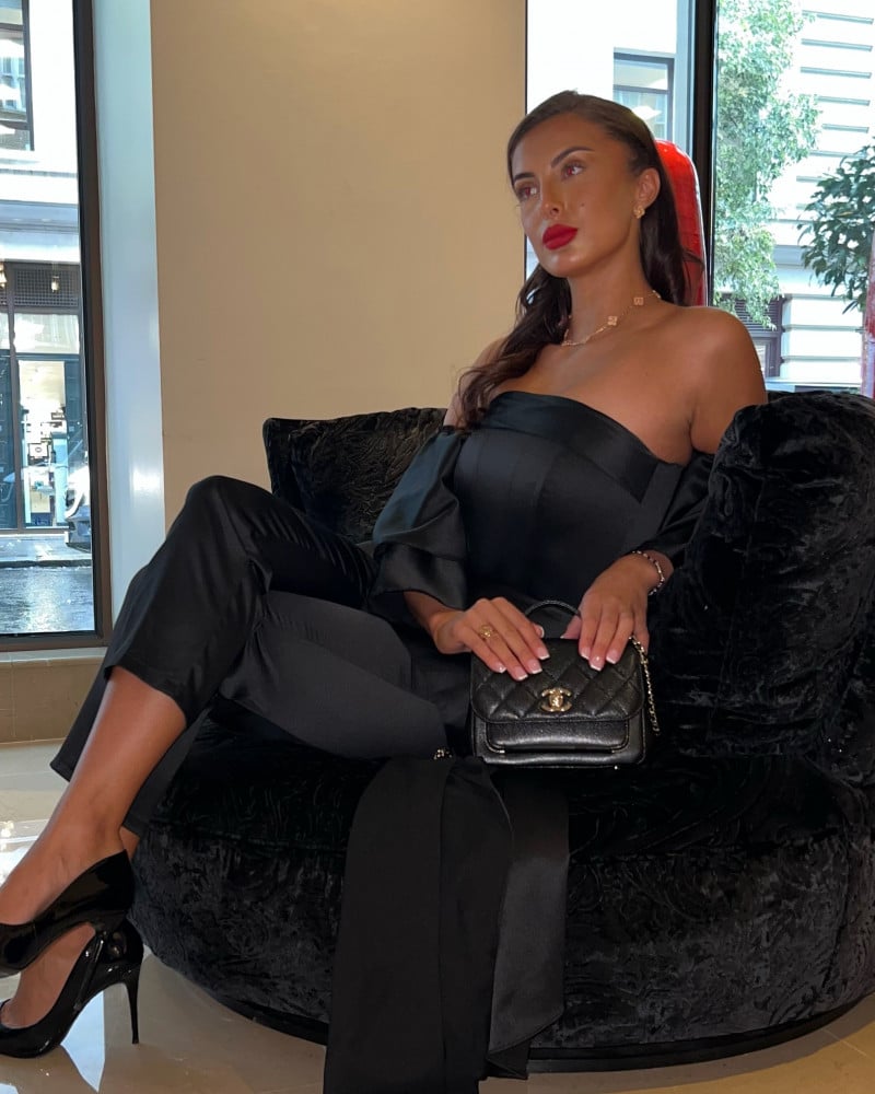 يرجى التاكد من المقاس بالرجوع الى دليل المقاسات في القائمة الجانبية و يقاس بالانش.• طول المودل: 160 سم• مقاس المودل: XS