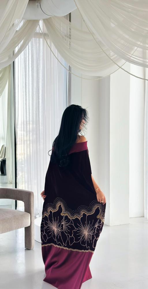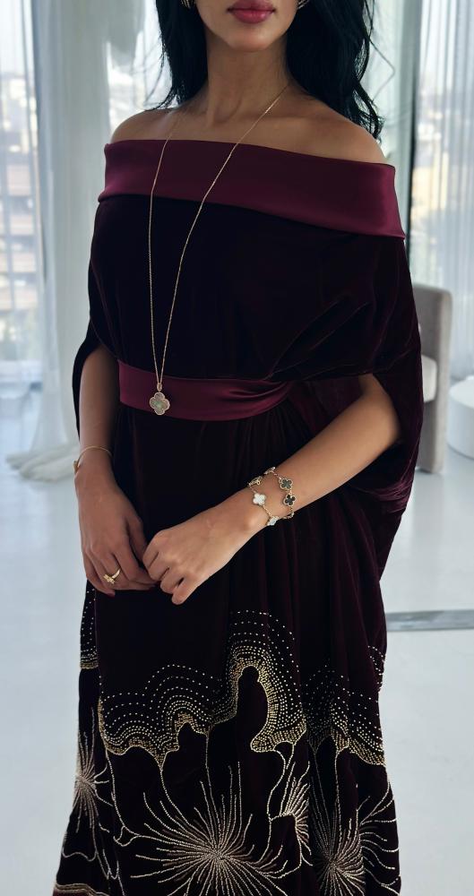جلابية فاخرة تعكس الأناقة الهادئة والفخامة الكلاسيكية، بتفاصيل راقية تمنح إطلالة أنثوية راقية وحضورًا لافتًا.