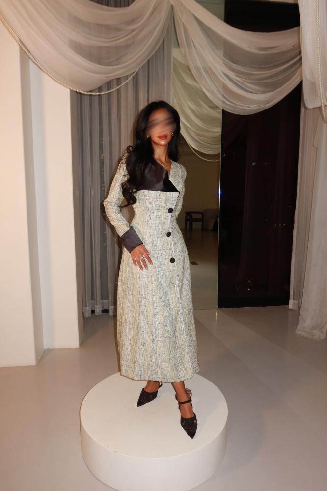 فستان شتوي فاخر بتصميم أنثوي أنيق، يتميّز بقصّة الخصر وانسيابية راقية للأسفل تمنح إطلالة راقية ومتوازنة. يتميز بتفاصيله اللامعة البسيطة، وياقة وأكمام من قماش ساتان بلون اسود فاخر تضيف لمسة دفء وفخامة.